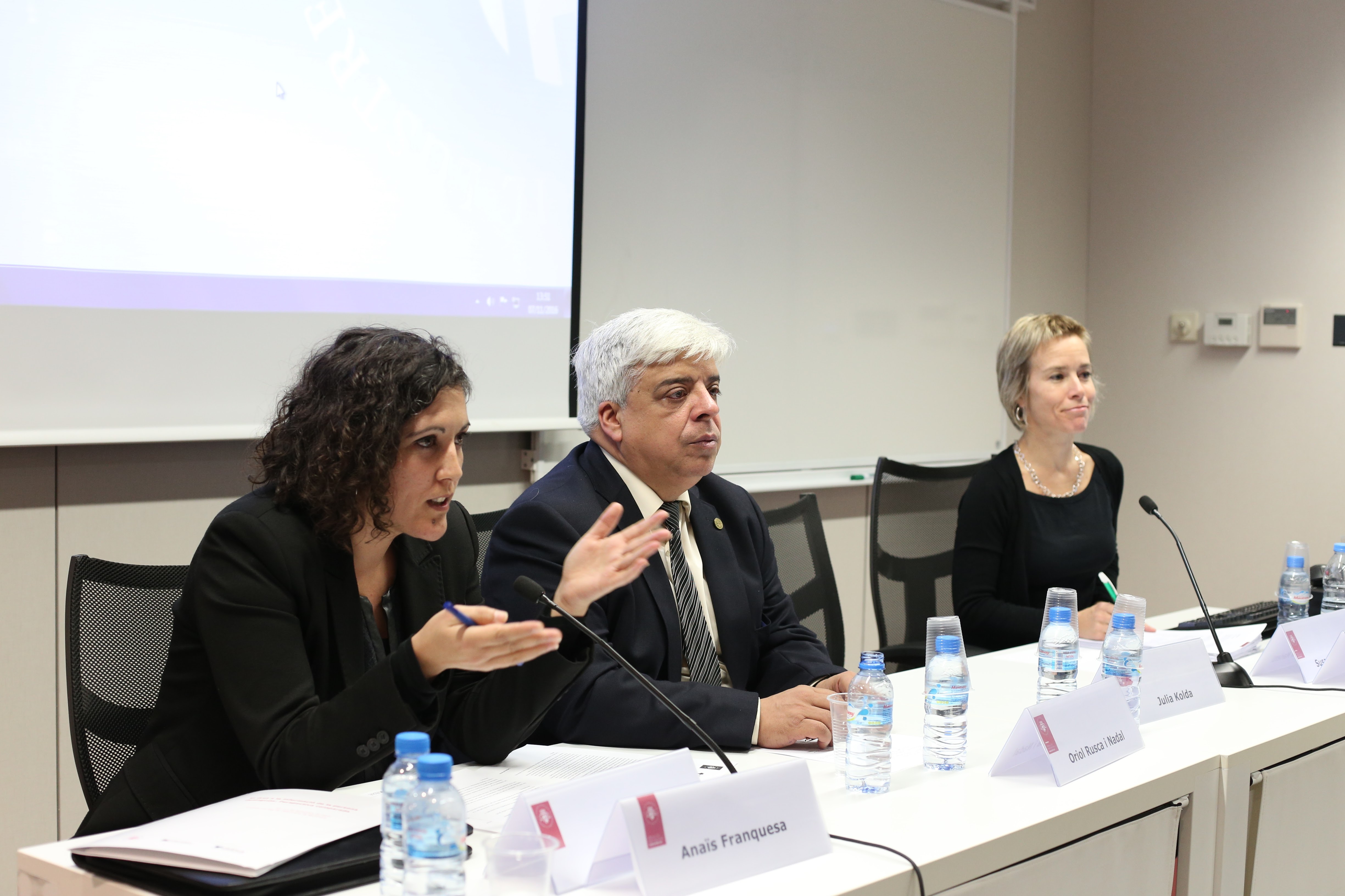 La primera taula rodona va ser sobre “l’accés a l’expedient en seu policial a l’àmbit europeu” en diferents països. Els participants Andy Griffiths, ex membre del cos de policia britànic i membre de l’Institute of Criminal Justice Studies de la Universitat de Portsmouth, Julia Kolda, advocada penalista d’Àustria, i Susanna Marietti, advocada i membre d’Antígona, Associació pel dret i la garantia al sistema penal, van comentar les diferents pràctiques policials a l’hora de donar la informació de les detingudes als seus països.