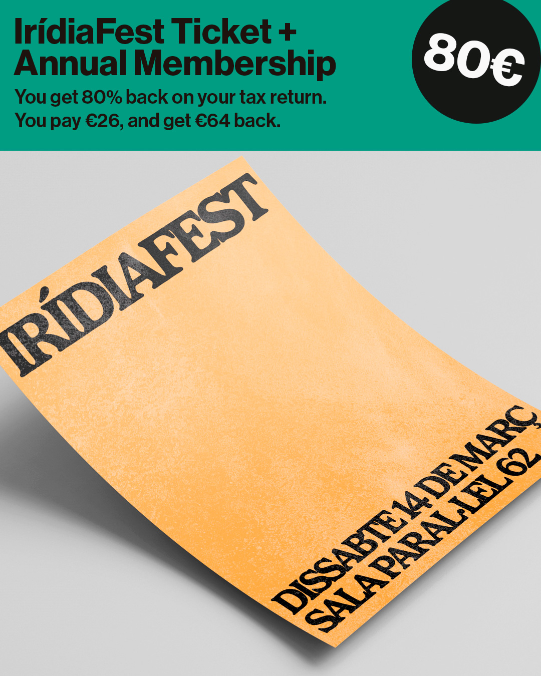 On 01/12/2026 we will raffle: 2 double tickets for the IrídiaFest open on March 14, 2026, 2 samarretes, 2 bosses and 2 sheets.