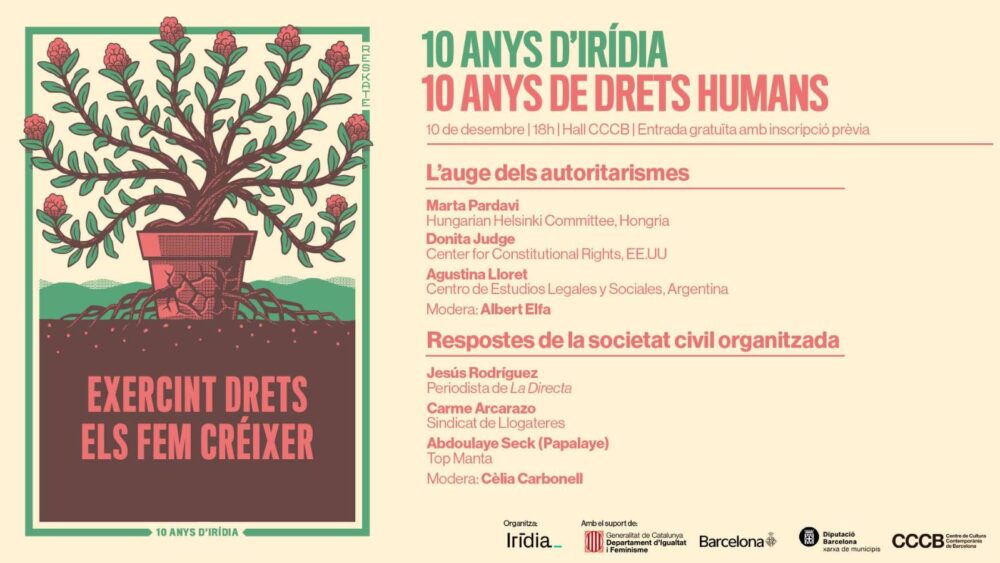 L’acte dels 10 anys d’Irídia serà una trobada per pensar i compartir estratègies de defensa dels drets humans en temps adversos, amb veus expertes internacionals i col·lectius locals de referència.